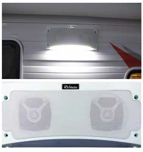 Finally a customized solution to allow the easy connection of speakers to an RV that does not have existing external speakers! This replaces your RV’s porch light with LED technology and adds speakers to the exterior of your RV.